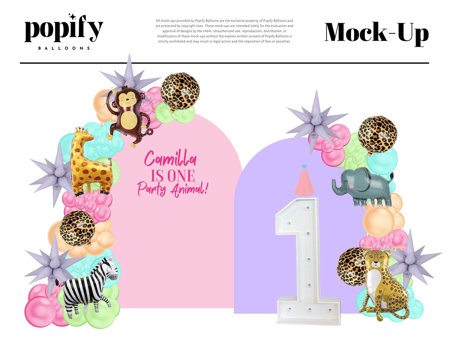 Open Arch rental is included. Final pricing will vary based on the thickness of the design and the length of the balloons used. Foil balloons and any additional add-ons can be included for an extra cost.
