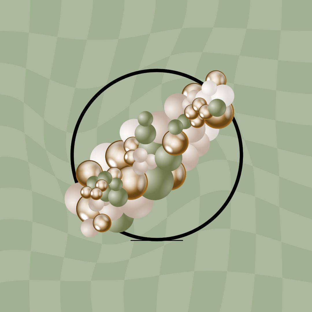 Circle Arch frame included can choose from white, black and gold. Depending on thickness of balloons will determine final price. Foil balloons and any additional add-ons can be included for an extra cost.