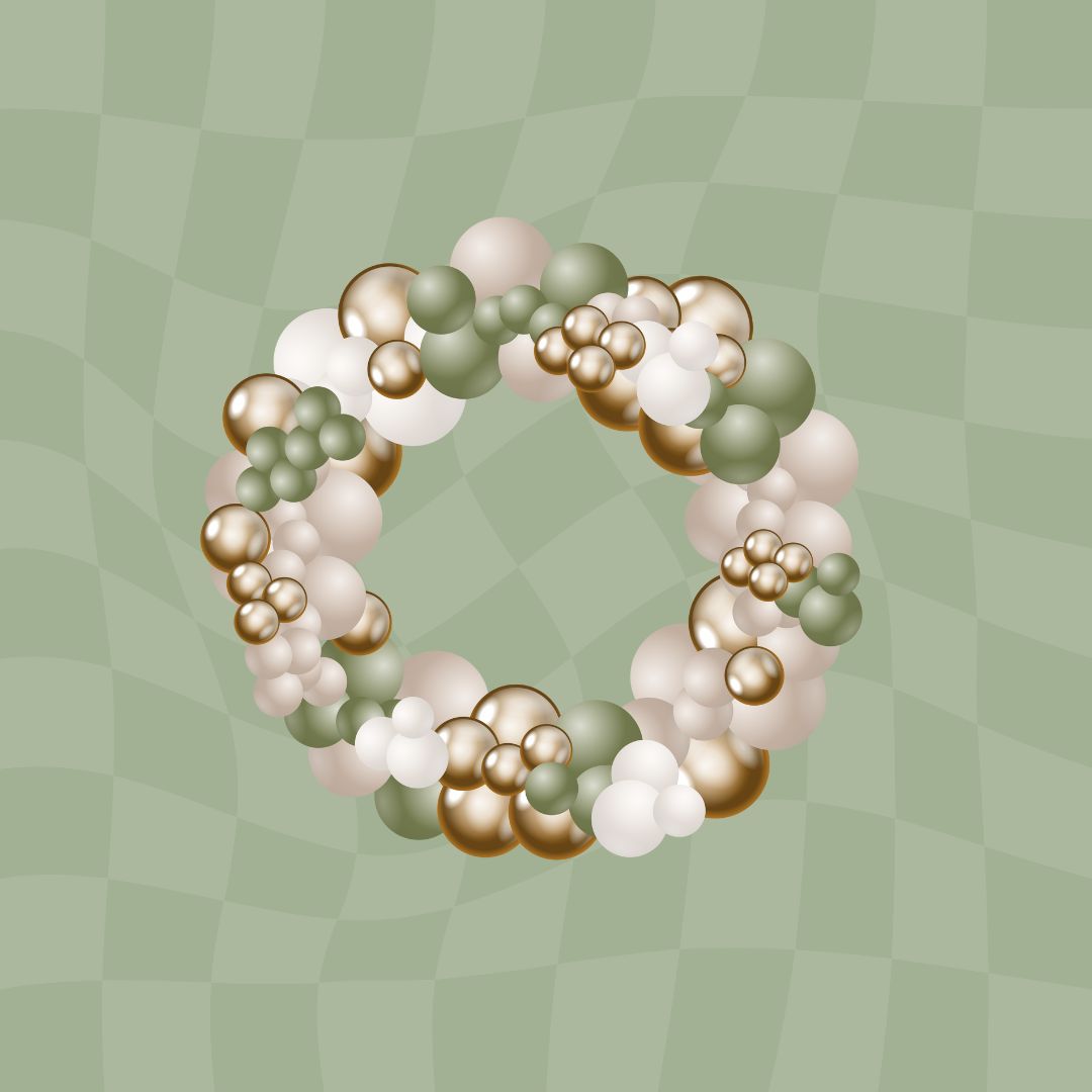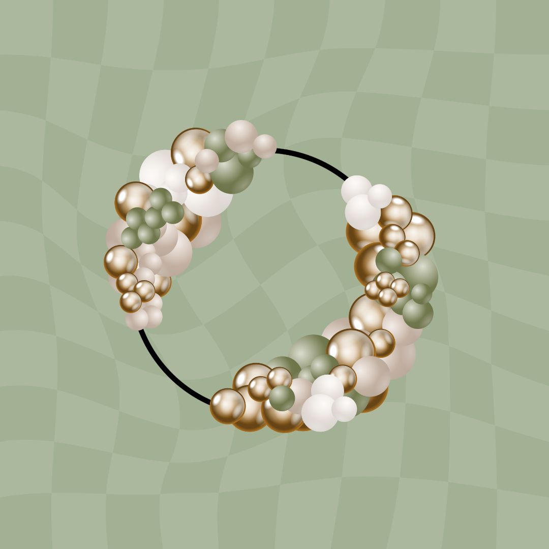 Circle Arch frame included can choose from white, black and gold. Full balloons around circle. Foil balloons and any additional add-ons can be included for an extra cost.
