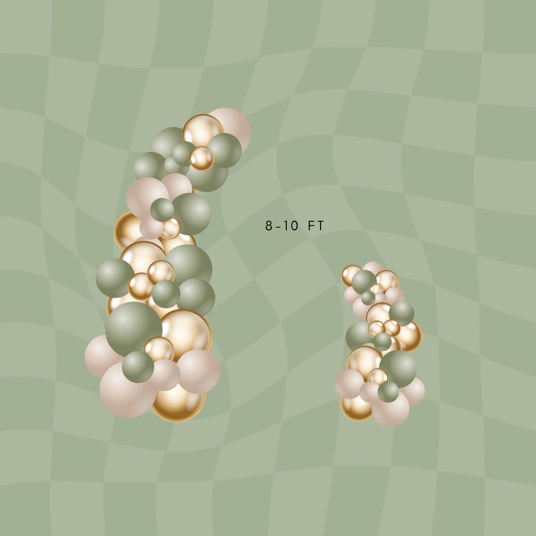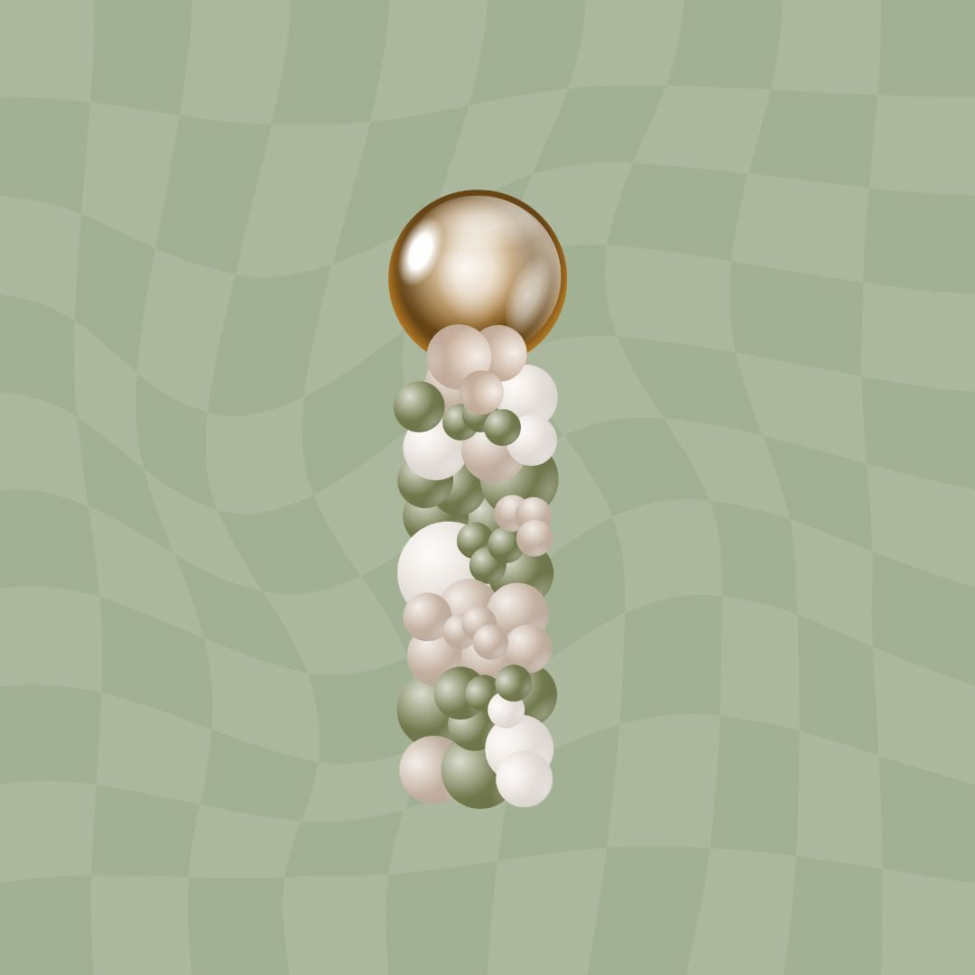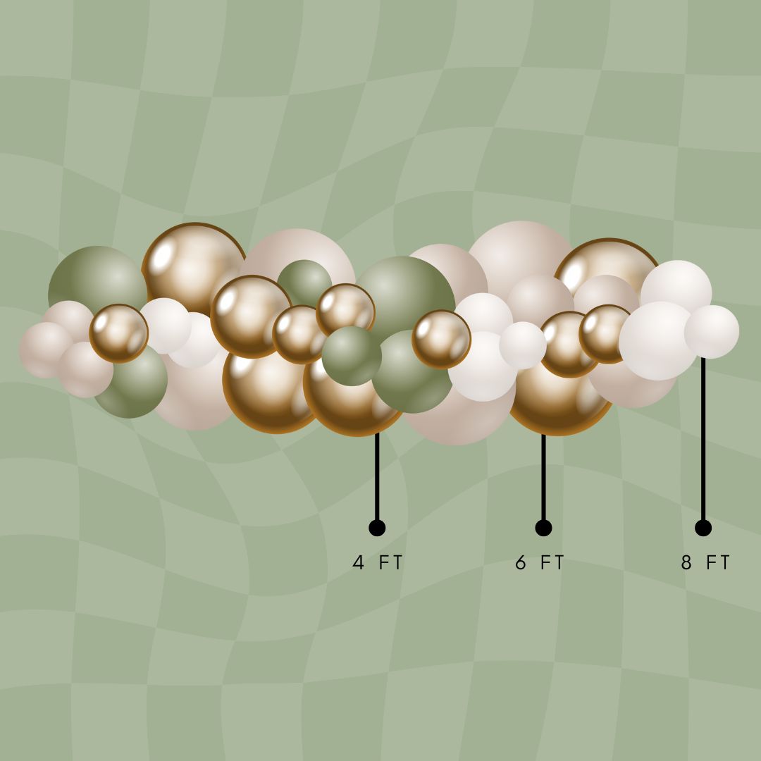 Garland with stand that includes variety of different size balloons. Foil balloons and any additional add-ons can be included for an extra cost.
