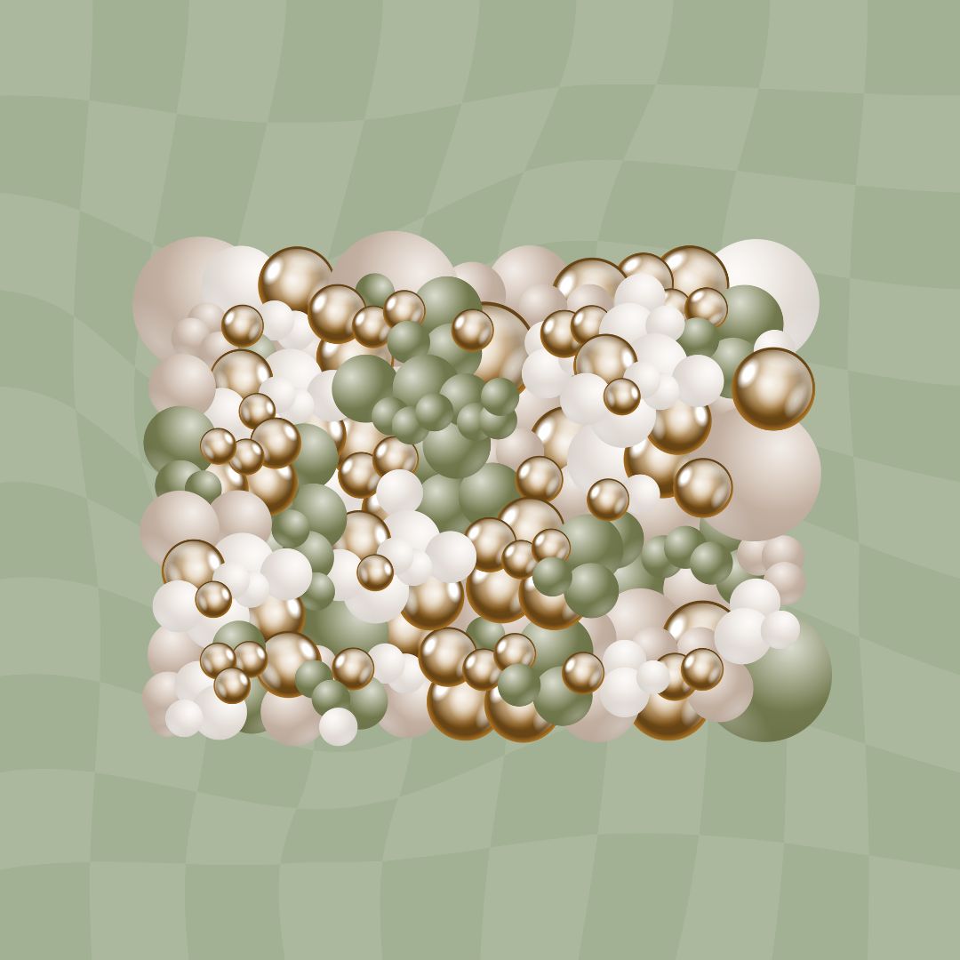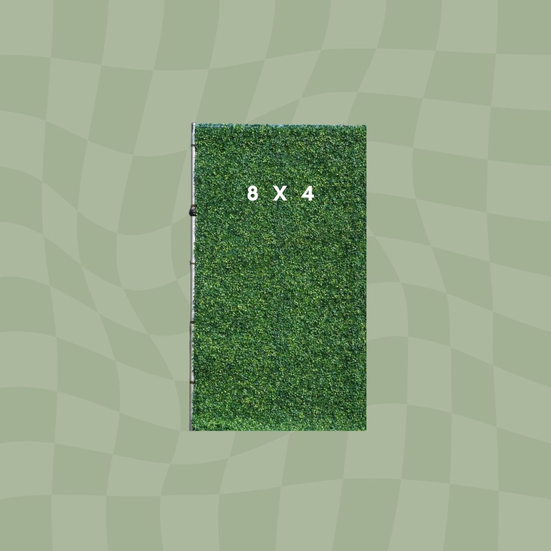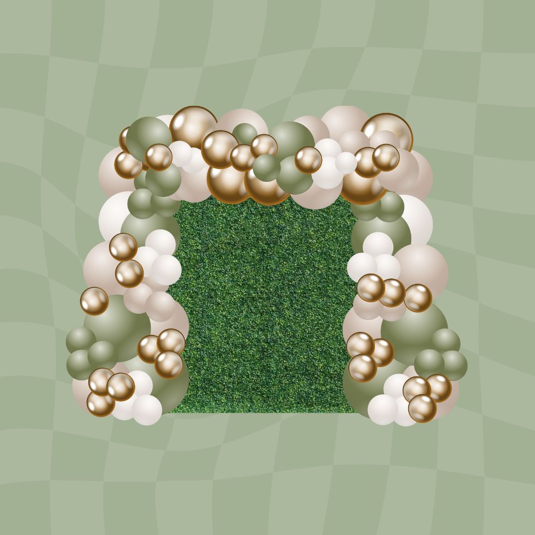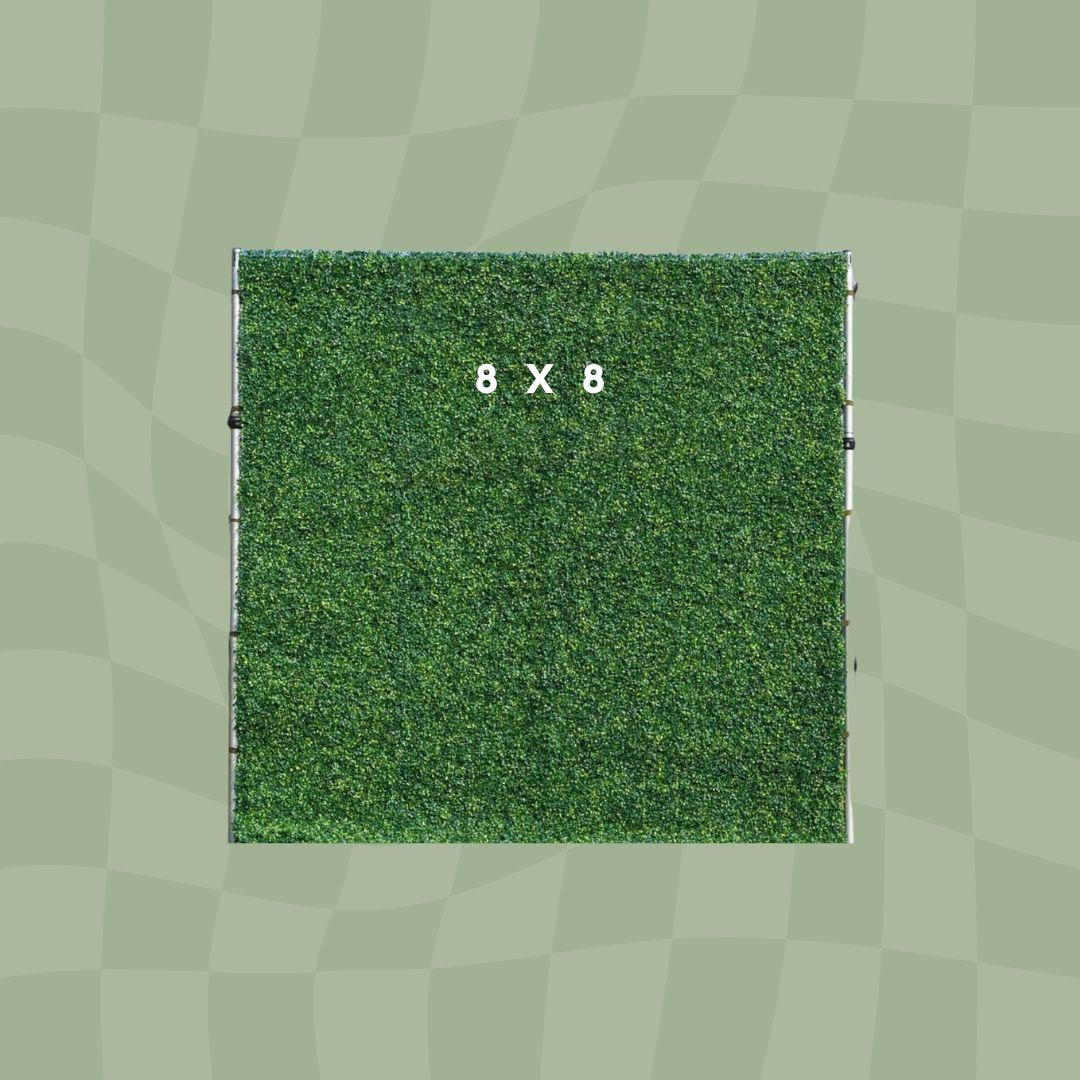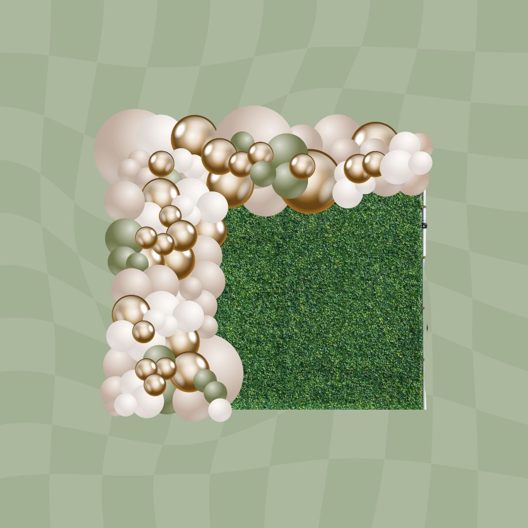 8ft by 8ft grass wall rental only, stand included. A Square-Shaped Garland of balloons can be attached. Foil balloons and any additional add-ons can be included for an extra cost.